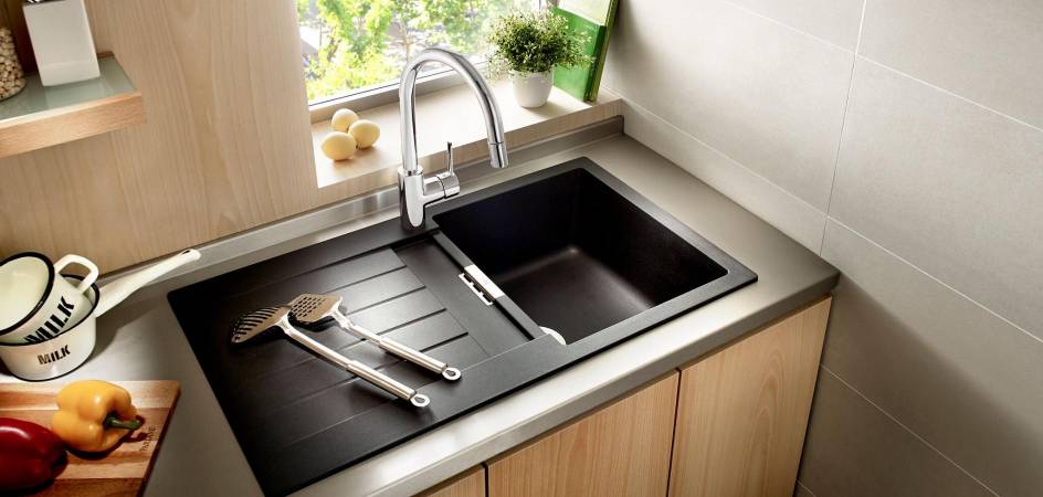 En los hogares en los que la cocina es la pieza central y el lugar de encuentro para desayunos en familia o cena, la elección del material para la encimera, los frentes y el fregadero suele centrarse en el aspecto. En estos casos se usan la piedra natural como el mármol, el granito o la pizarra. Ya sea mármol claro o pizarra oscura, los fregaderos de piedra natural ofrecen un veteado único y confieren personalidad a cada cocina.