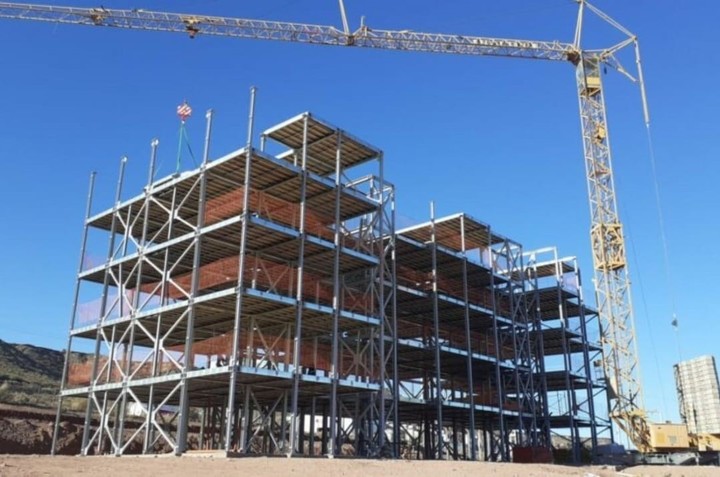 La construcción de Añelo Central se basa en módulos 3D que se fabrican en planta y son trasladados a obra con un 80% de grado de avance, solo resta el ensamblaje en obra y la conexión de instalaciones.