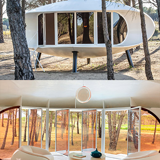 La casa está fabricada a base de fibra de vidrio, con suelo de madera y 45 metros cuadrados en los que el espacio no es desaprovechado. Se trata de una construcción de tipo moderno, que el arquitecto francés se encontró abandonada en Grecia en 2023, y decidió comprarla. Clement Cividino, criado en Buenos Aires y actual habitante de Perpiñán (Francia), decidió restaurarla y ya entre junio de 2023 y septiembre de 2024, la vivienda estaba expuesta en Terra Remota de Girona. Brad Pitt no tardó mucho en echarle el ojo y quererla de su posesión.